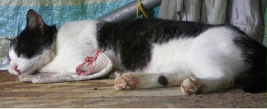 事後詢問花貓主人,他很無奈,這隻貓除了固定吃貓食外,也很會吃野味,雞、鳥、老鼠、蛇全都是他的零食