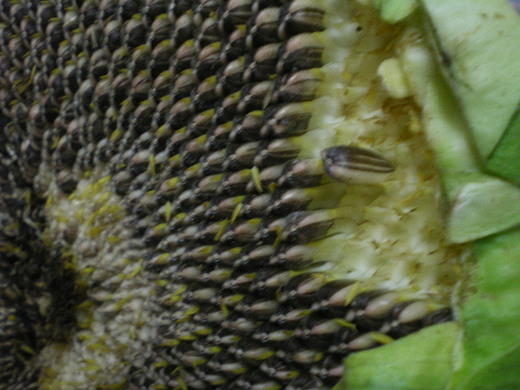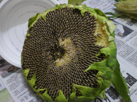 去年朋友送來幾顆大品種的向日葵種子,撒播之後只有4個發芽。精心照顧,每一株長約200多公分,也盼到開花,花大如排球,心想今年我可以吃到自己種的有機葵瓜子。沒料到鳳凰颱風來,四顆全數陣亡。