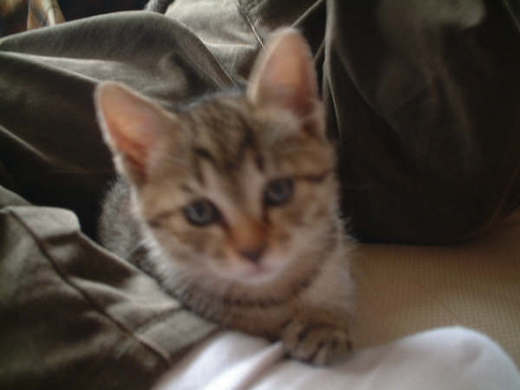 當初為了找寵物來作伴,尋找約一年的時間,剛好安親班的老師要送出四隻小貓,當我第一眼看到吉比時,不考慮地抱回家,曾經曹遇家人的反對,但還是堅持留下牠。