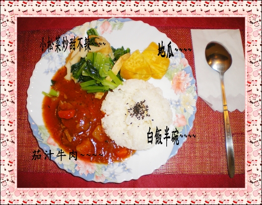 我們家成員三人,自從孩子上大學住校後,先生也因工作住外地,我一人留守家中,平日每到用餐時間都是一人飽全家飽,因此有時菜園收成好時都是一大盤綜合青菜,朋友說我這種飲食遲早會營養不良,這次特別為自已做個晚餐,有菜有肉有魚(甜不辣)+一個蘋果,這樣的一餐應該營養均衡了吧!