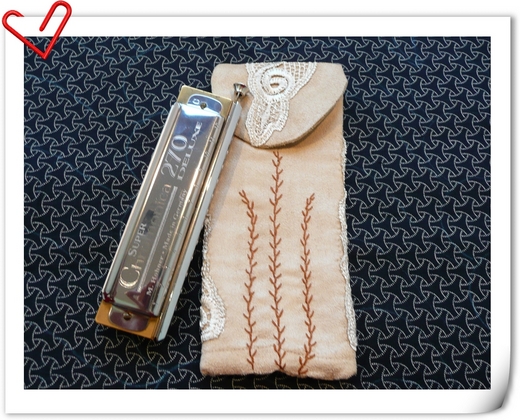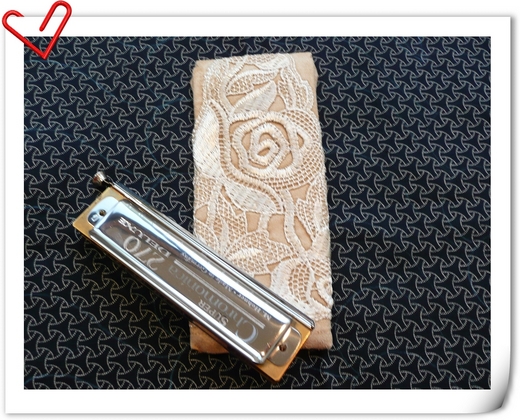 這幾天氣溫低又下雨,只能在家中和吉比相依偎,整理我的琴譜,每支口琴都有衣服,就只有這支半音階還是在塑膠盒中,因些把一件舊衣服拆了做一件衣服給半音階,素絨布加上蕾絲,手感很不錯