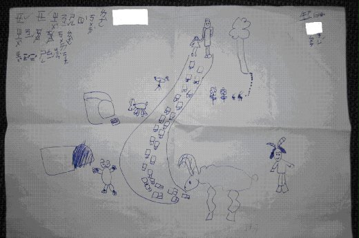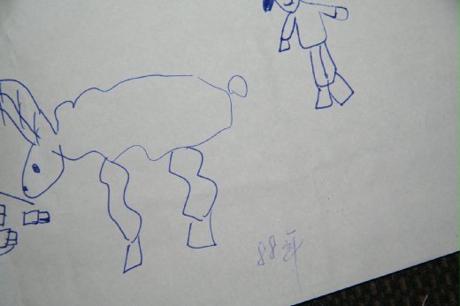 這張圖,是問樵丫頭上小學前的畫作。送給爺爺的生日禮物。