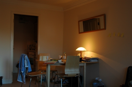 搬到新公寓不到一個月。某天,洗好頭、吹完頭髮之後,屋裡突然一片漆黑。完全不知道發生了什麼事。第一個直覺是:保險絲燒壞了。才搬來不久,自然不知道電源的總開關在那兒,時間已經是下午四點多,接近下班的時刻。我想,在蘇格蘭,絕對沒一家水電行的人,願意在寒冬的下班時間裡,來家裡幫你換保險絲,一定是得「明天再說」。家裡沒電話、沒網路,人生地不熟,再加上才剛來到愛丁堡不到兩週,英文程度還很差,完全還沒進入狀況,真不知該怎麼辦。更糟的是,記得我煮飯用的是「電爐」吧?這下沒電,連晚餐也沒有著落。