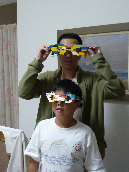後來小K自己又覺得這個眼鏡太大了,沒法子真的戴上,於是又去做了一個真的可以帶的樂高眼鏡。不但自己玩得很開心,也發揮了自己的創意。