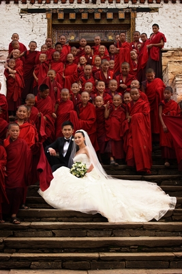 知名銀色情侶梁朝偉和劉嘉玲,在歷經二十年的愛情長跑之後,昨天終於在海拔兩千三百公尺上的不丹,舉行世紀婚禮。這場婚禮,光是不丹UmaPara酒店的宴席就耗資三百九十萬臺幣,在演藝圈數十位好友的見證下,梁朝偉和劉嘉玲先穿上不丹傳統禮服,由喇嘛宗師主婚,梁朝偉獻上價值一億臺幣的卡地亞十