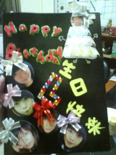 從臺北回來已經接近九點了!眼看生日就要這樣消逝,結果喜出望外地發現冰箱裡有耀文特地送來的草莓蛋糕,尺寸不大卻不失精緻,這陣子雖然比較少跟她像以前一樣碰面、聊天,但對於她這番心意,我是感激在心的!才想著,突然又接到303雅瑩和夙妤的電話,一派神祕。原來她們五妞居然親手做了卡片,還訂了個蛋糕,千里迢迢託人外送到鹿港高中,想給我一個意外的驚喜,所以打電話來確認我有沒有收到?結果我告訴她們我今天出差,反倒害她們失望不已!認為自己精心企劃的驚喜破了局!其實沒有破局,隔天到校,我看到同事幫我冰在冰箱的巧克力大蛋糕,以及貼著她們五妞照片與寫滿祝福的卡片,我還是覺得十分窩心!都離開快兩年了,難得她們如此有心!