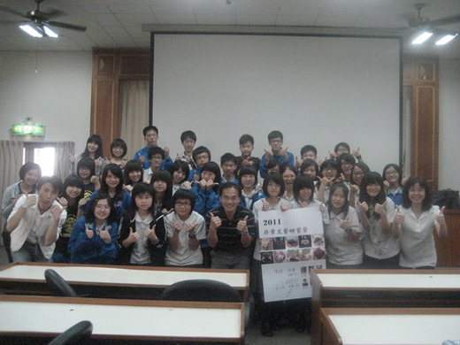 五月更不必提了,兩天不過夜的「非常文藝研習營」是年度重頭戲,從三月不停修改的企劃案和不停被退回的公文,使我深刻體認辦活動的不易,所幸科內及校內許多前輩都十分關心、支持,我才能屢過困境,二十八、二十九日兩天下來,學生的反應非常熱烈,看到他們在每節下課大排長龍等著與講師拍照、請講師簽名,我所有的辛勞和怨言似乎瞬間便煙消雲散!更可貴的是,能親炙林廣、曾金美、柳文娟、林俊臣、官廷森這些名師,真令我獲益良多,而透過秀美學姊的穿針引線,更受寵若驚地加入了林廣老師的編寫團隊,實讓我興奮難平,只不過,冀望六月以後可以比較悠閒的想法,恐怕又得調整了!