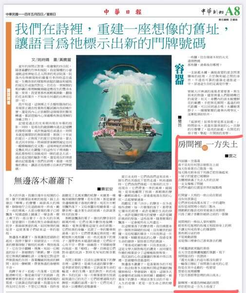 🌾 曾經是房間裡的一方失土,文字把失據的心,一盎司一盎司的收復~~ . ------------------------------------ . 🥀 〈房間裡的一方失土〉/2025/5/4刊於...