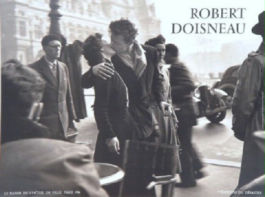 相信大家在小時候都看過這張照片的掛報、海報、書卡、信紙等等周邊商品吧。這是法國攝影師杜瓦諾(Robert_Doisneau)在巴黎拍攝的知名作品「市政廳前之吻」(Le Baiser de l'Hotel de Ville)-拍攝的時間是1950年,不可思議吧,這張浪漫照片已經持續了半個世紀以上。照片中的人兒早已人老珠黃甚至墳上草同人高了。