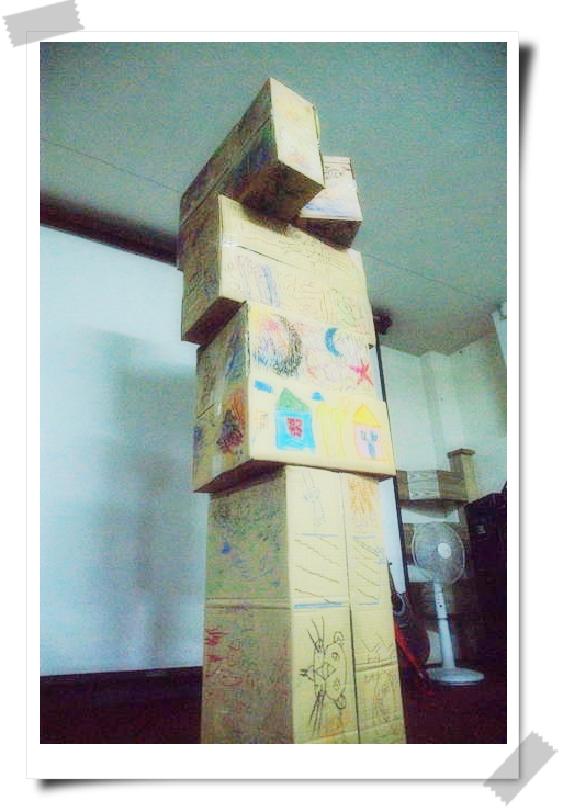 畫畫的過程中,CHARMY一邊叮嚀著如何在有效的時間內,如何可以讓事情發生以及當一個主辦可以學習到的心得分享,除了分組和時間的管理,以及不斷的綀習,體驗到的事情,完全與前二次只是參與者的角色有很大的不同。孩子們拿著筆,盡情的畫畫著,過程中發現了好幾位畢卡索,孩子拿著筆,不會搶來搶去,反而很有向心力的想要完成各組的紙箱創作。