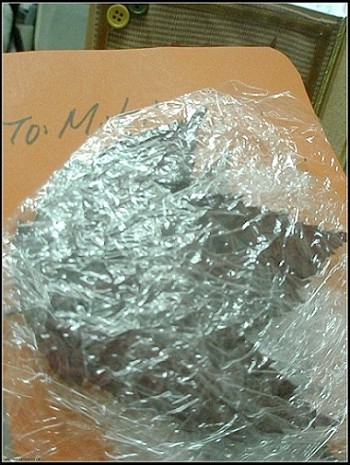 Ms. OMG回應留言很仔細,很窩心,主動說要寄來給MIKI,讓我受寵若驚!也謝謝她包裝仔細,上圖,就是她細心可愛的證明,一片楓葉,一張保鮮膜,小心的收留著,再送它們來台灣找我!