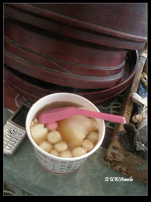 天雨下的很大,以為早上車會少一點,結果大家都小心開車,車速都很緩慢,到達公主家時,快八點,物品上車,再度出發。這一次,我只記得好喝的豆花,我記得,那是一陣熱煙,在我的左方飄揚,看著阿婆推著車,上面一桶大大的豆花+圓仔,我們要定了,就算要錢,照付即可。but,溫暖的是:它,是阿婆請的。公主前往端了二杯,雙手摸著杯身,很幸福的溫度。大家都在排隊,負責人盡義務的在每個攤位前喊著:埔里最有名的,阿婆豆花,在圓環那邊!有點兒甜,阿婆,可不可以半糖就好!呵呵。