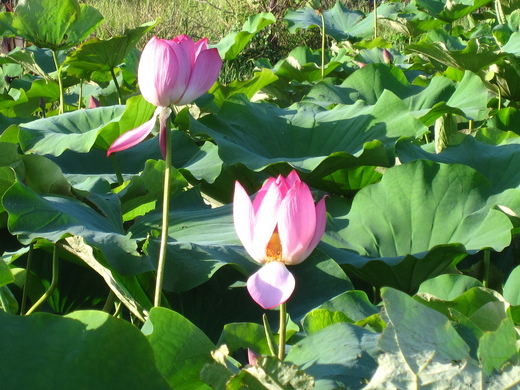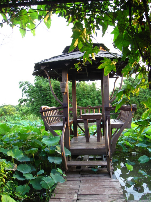 這亭子看來頗特別,小巧又吊高。晴日賞蓮, 歇坐古亭裡, 風吹心涼催人眠.