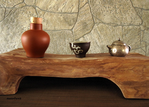 圖中的木頭是老柚木,喜愛老木頭的陳拙,且先不問價錢,就是要一份優雅。