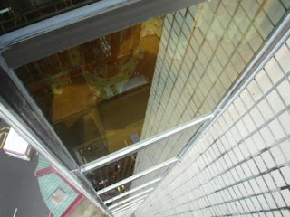 大樓外牆帷幕玻璃窗框滲漏水防水修漏工程0915-356-712,繩索技術專門高空作業蜘蛛人工法~2011.元月,台北板橋