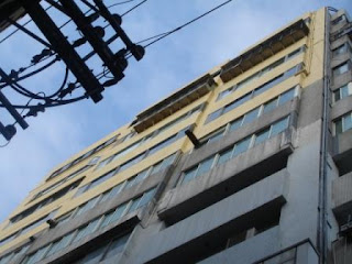 外牆更新:外牆防水、防水修漏、外牆拉皮、外牆防水漆噴漆塗裝前、後圖。2010.6基隆航運大樓