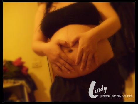 每天看自己肚子都不會覺得有變大,但是久久這樣拍一次肚皮,就覺得真的是一眠大一吋啊!