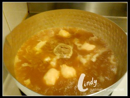 煮滾一鍋水然後把咖哩塊丟下去,滾了之後再放我愛吃的蝦丸、貢丸跟肉羹。