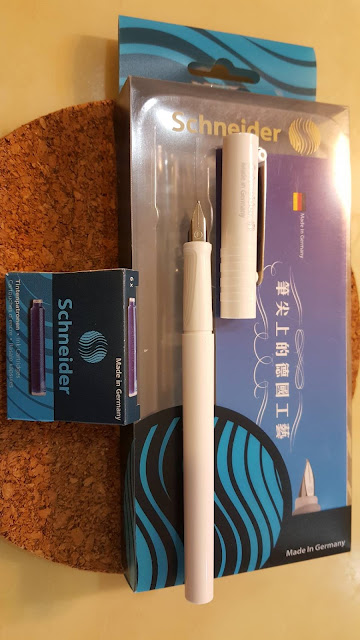 有次去家樂福時,不經意地逛了文具區,看到一個以前在德國熟悉的牌子Schneider施耐德618鋼筆套組,從盒子上、筆桿上、贈送的墨水夾上都寫著Made in Germany似乎深怕被埋沒在MIC的世界裡。