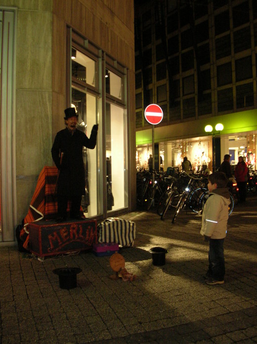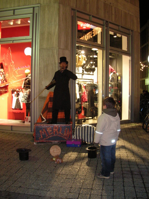 而那即將下班的魔法師,站在街角的小表演箱子上,陷入了沉思。