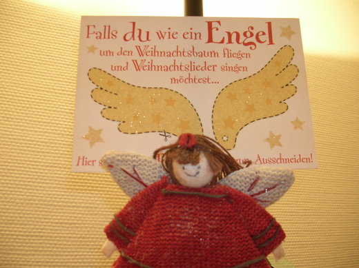 小男孩從外套口袋拿出一張聖誕明信片,卡片上面畫著一對黃色的翅膀,還灑著亮亮的金粉。