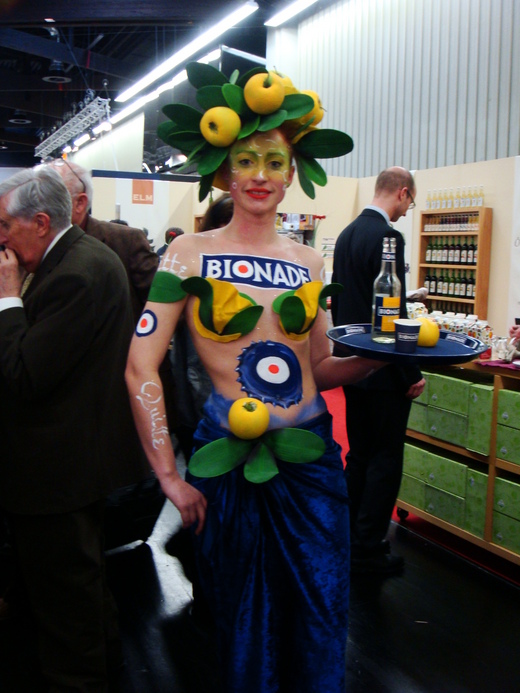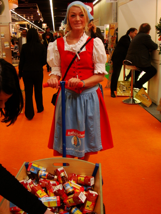 據說今年是第二十年,每年之間其實變化不很大,尤其很多歐洲產品都可以在這邊的商店看到,所以反而期待看到其他國家或古怪的、特別高檔的有機產品(平常看不到也吃不到)。枸杞子是這次展覽的新產品,枸杞子新吃法是,外面包著一層巧克力的枸杞子,小姐要我們試吃看看,她說: 這是有苦巧克力口味、那是牛奶巧克力口味。對不起,我微笑搖搖頭,不過各收下一包試吃包,神奇巧克力枸杞子,帶回島國給阿嬤吃吃看。