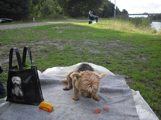 月亮更是等不得,車門剛打開,他已竄身而跳出,高興的在草地上跑跳,接著我兩去散步半小時,這期間老公會把釣魚竿整理,放好位置,等我們回來,就開始淨心釣魚啦.!