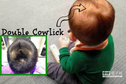 聽說頭上有兩個以上髮旋的人,脾氣又臭又硬,不容易相處。(圖/取自tallmomtinybaby.com、qiushibaike.com)