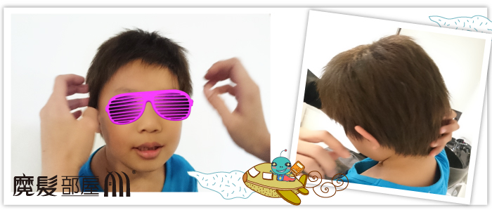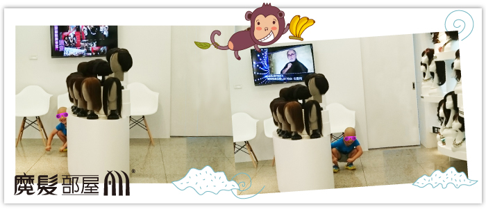 而今天他比平常還High,因為這是住院住了一個多月後的出院日,媽咪帶他到魔髮部屋整理髮型,他開心的在門市跳來跳去玩躲貓貓。