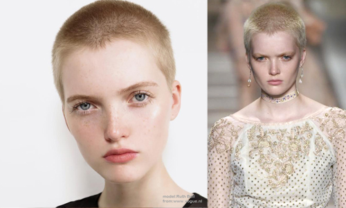 林太太雖然剛剛沒有遲疑的就決定要理平頭,但是看到真的變這麼短了,一時之間還是很難接受。不過她的眉型很漂亮,鼻子也夠挺,理短髮後相當清秀好看,讓人想起了最近秋冬雜誌上很常看到的時尚新秀Ruth Bell,我們趕緊跟她分享這麼酷的造型