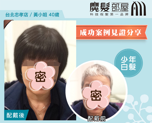 「以後再也不用被人家從背後叫奶奶了!」黃小姐看著新髮型顯得相當滿意,修飾白頭髮不再只有染髮一途可以解決,醫療假髮幫您兼顧健康與美麗