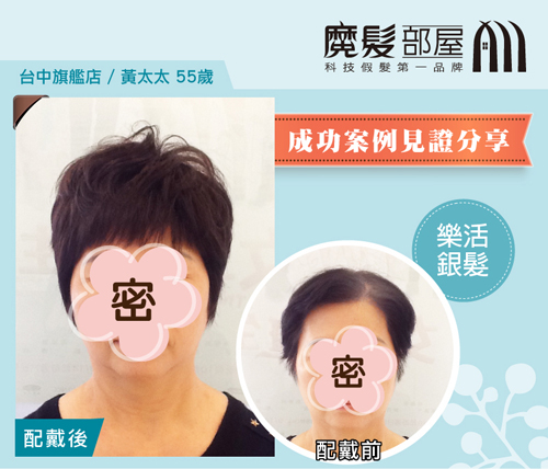 這款假髮是連化療時的敏感頭皮都能安心使用的醫療假髮,果然深受黃太太喜愛,輕盈又舒適的感覺讓她幾乎感覺不到重量和壓力,也沒有異物感,黃太太一想到終於可以不必再為了遮白髮煩惱了,不用再讓化學藥劑傷害皮膚,又有這麼漂亮的髮型就開心的一直道謝^^