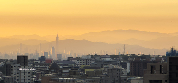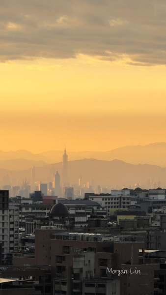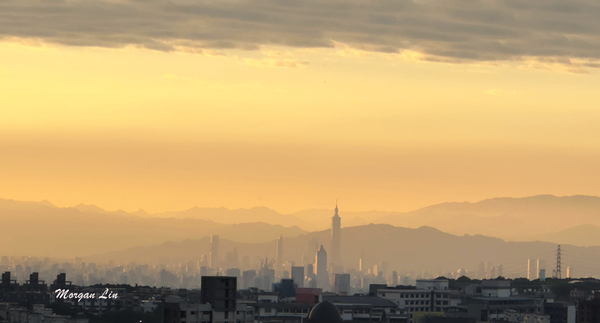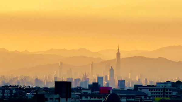 這照片光影柔和、遠山重疊,台北101矗立其中,如入定的行者,十分契合佛家修行之境。