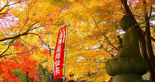 絕美的『五段染』,總該是可遇而不可求的,但一踏上小島,在晨曦下,一棵棵透露著金光、金黃、豔紅、橙黃、深紅、鮮綠交織的楓樹,歡迎我們,而石佛像自在的禪坐其間,想起心經「觀自在菩薩,行深般若波羅蜜多時,照見五蘊皆空,度一切苦厄。色不異空,空不異色;色即是空,空即是色,受想行識亦復如是…………。」佛已與大自然融而為一,寵辱皆忘。人生的瑰麗或醜陋,大自然的美與醜,皆是「唯心所現」,何需去執著、計較呢?奧入瀨溪失去的,在松島卻意外得來毫不費功夫;緣起、緣滅(緣聚則生,緣散則滅),原是宇宙自然的演進,世事又何須太計較,也許如能以「平常心」、「歡喜心」再加點「慈悲心」,將讓您過得更充實;而「隨緣」、「放下」將讓您生活更愜意。