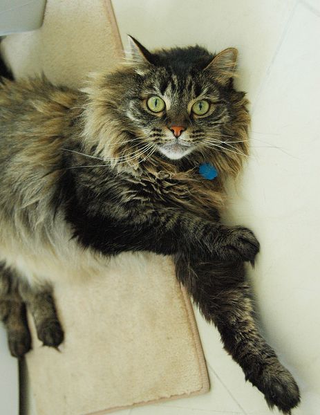 Fifi也天天遙望著窗外,也許外面花花綠綠的美麗世界,讓牠很好奇、好嚮往。一逮到機會,她就從門口、從窗台溜出去,躲開你,讓你找不著,有幾次,到了半夜,天冷,仍不見歸來,女兒急得哭了,拿著手電筒到處找。找到了,帶回家,還得幫牠把髒兮兮的身子洗頓澡,受傷了,還得帶去看獸醫師,我心想,養個貓兒子、當個貓媽媽,可真不容易。