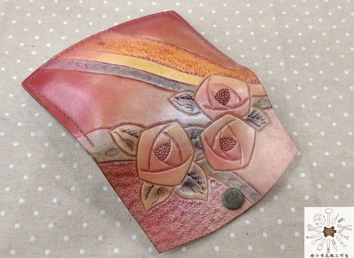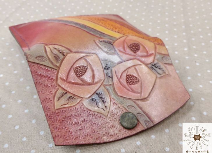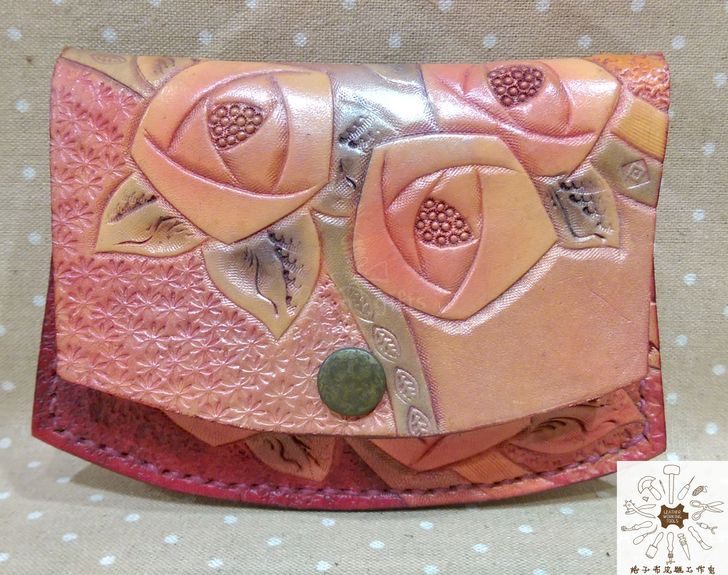 產品介紹:純牛皮玫瑰花圖案扁型零錢包.卡夾
