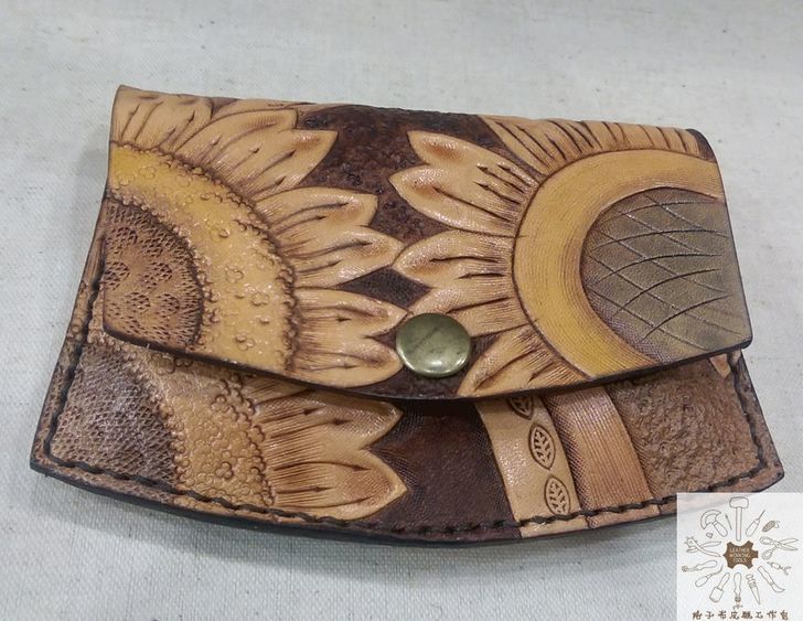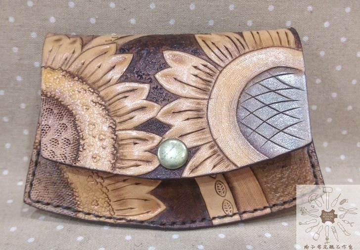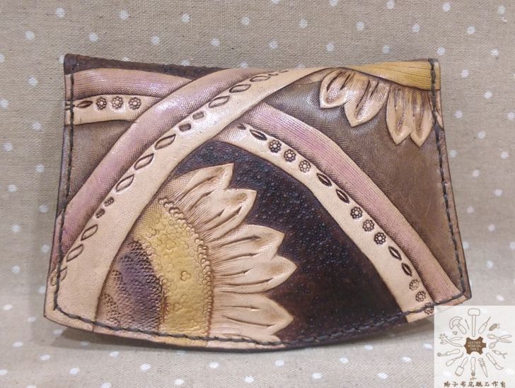 純牛皮玫瑰花/太陽花圖案扁型零錢包.卡夾