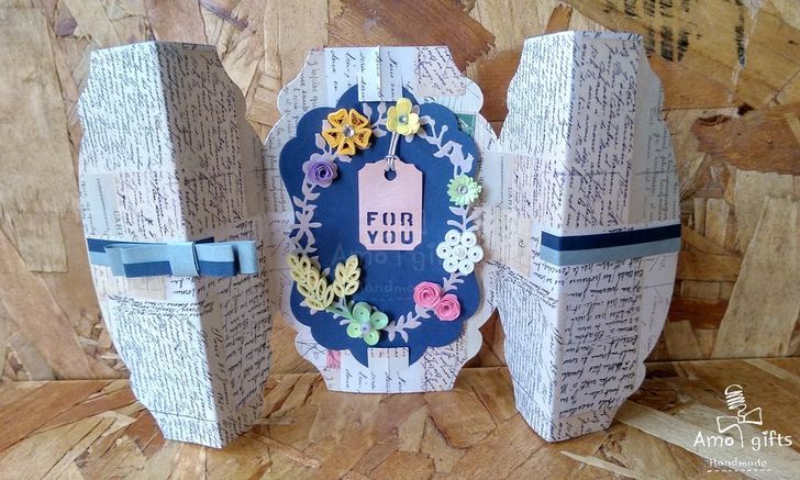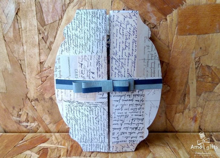 卡片封面利用灰.寶藍漸層搭配打個蝴蝶結呈現出類似緞帶效果