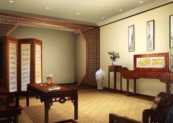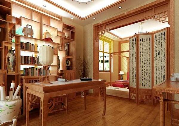 在書房內的裝飾上,往往採用碧紗櫥、屏風、