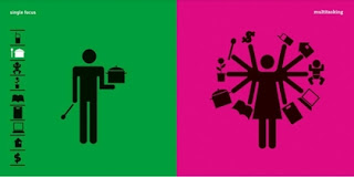 男生一次只能專注做一件事,女生則蠟燭多頭燒,要兼顧家庭事業,上班處理公事、下班照顧孩子整理家務。