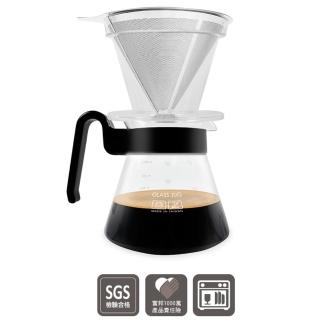 商品規格:免用濾紙無濾紙含漂白劑疑慮,環保與經濟的新選擇,為您省下額外耗材費用。不鏽鋼研製高密度濾網不含重金屬、雙酚、塑化劑,不起化學變化更耐用。高密度極細目濾網,有效濾除咖啡細末。口感層次更豐富與虹吸壺、一般濾杯相比,更能保留完整風味,口感層次更佳。搭配透明承架方便使用於各式杯口及玻璃壺。容量刻度標示耐熱玻璃壺,沖泡計量簡單方便,可當量杯使用。檢驗合格,不含重金屬及有害物質。台灣製造精品,投保富邦萬產品責任險。