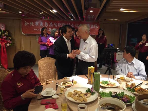 勝考甫接任新北市救護志工大隊長,昨參加立委江惠貞接任新北市婦女防火宣導大隊長聯誼餐會,共同為消防工作努力。會中向消防署長拜託儘速通過「消防人員危險加給勤務繁重加成」的法源依據,為警消夥伴爭取應有的權利。