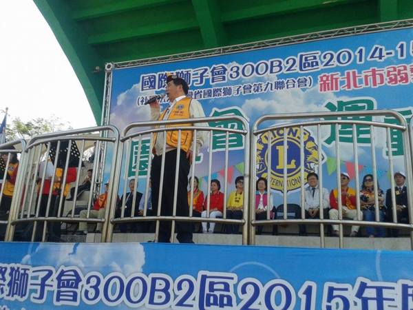 勝考以國際獅子會300B2區總監身份,參加2014~2015年舉辦新北市弱勢團體園遊會及運動會,今日所得將全部做為公益用於社會;勝考今天也捐出第三部復健巡迴車,再次感謝今日來參加的來賓及獅友。