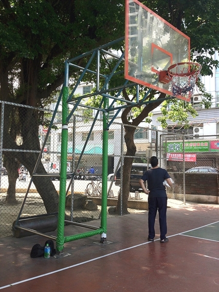 舊式籃球架以搖晃不已