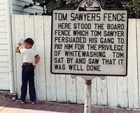 我們很多人都看過馬克吐溫的名作『湯姆歷險記』;沒錯的話,我記得很小的時候看的是東方少年出版社的版本。故事開始沒多久,姑媽處罰調皮的湯姆漆一道牆,本來湯姆不情願地漆著,後來讓他想出了個好主意:他裝出一副樂在其中,像是藝術家做畫般的心滿意足神情,令湯姆的一個奚落他的朋友心生羨慕,後來寧願用蘋果跟湯姆換來可以漆牆的機會。