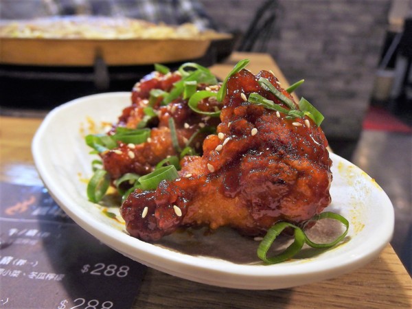 在我的「強迫分享」下,每個人還是嚐到了黃鶴洞的韓式炸雞,我覺得比中原另外一家韓式料理的炸雞辣度減低很多,外面的醬也不會一咬下都覺得只在吃醬,而嚐不出皮跟肉的味道。