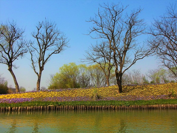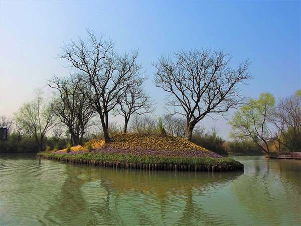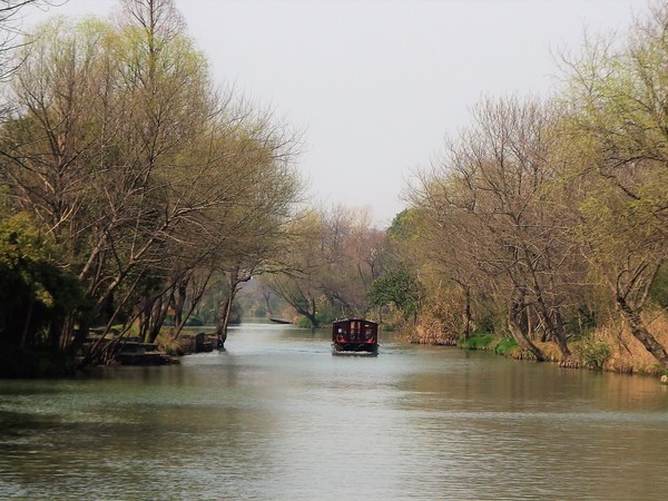 西溪濕地的水域之廣,有六條河流縱橫交會,還有無數的分流,如果從上空看的話,可能就像網子,想要逛遍整個西溪濕地,也的確要多花一些時間。「春日可踏青、夏日可採菱、秋日可賞蘆、冬日可探梅。」四季風情,各有千秋。而我們來的這一天,天氣大好,應該去採菱的(誤~~)