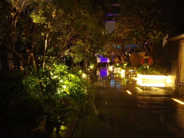 晚上來到泳池畔,又是一番風情。天氣好的話,是有星空吧,可以在這裡喝個飲料,天氣不好就收起來了。即便如此,我和友人也在泳池旁邊走了一趟……這種氣氛,你說不找金材昱來一起散步怎麼行?XDDDD