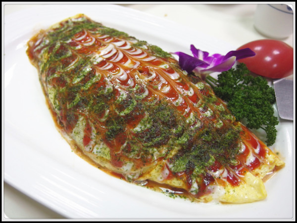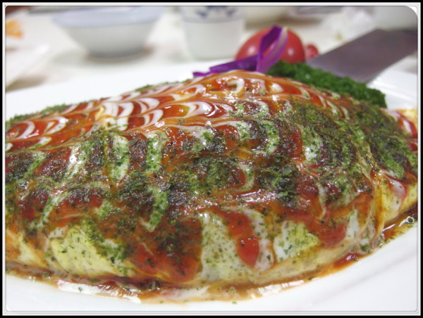 來了!這也弄的太藝術品了吧?難怪她的食物那麼晚才來!不過是個蛋捲炒麵,卻處理的這麼漂亮!它一上場,所有人的眼睛都亮了起來!