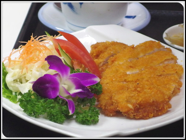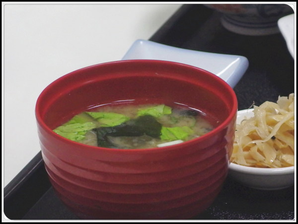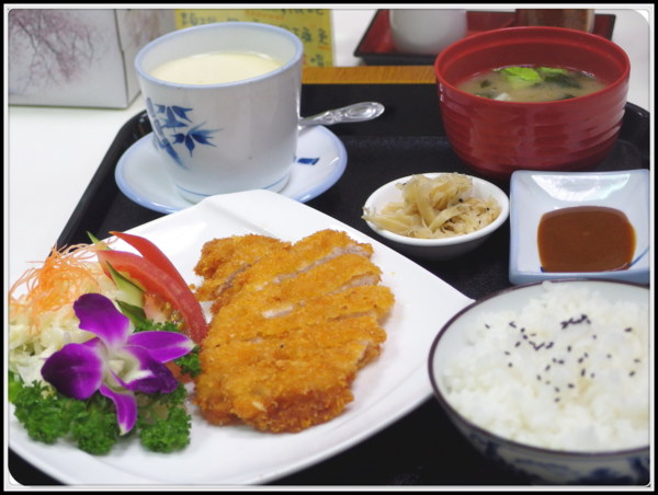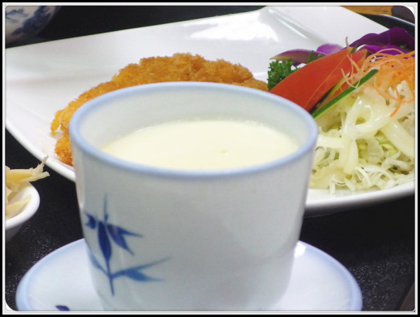 這是阿姊點的豬排定食,看起來很豐盛,跟我的飯跟阿姊交換豬排來吃,豬排相當紮實,也很有嚼勁,而且炸的酥酥脆脆,加上牛蒡、蒸蛋、味噌湯……應該點這個給兒子吃,他吃的會比較飽!